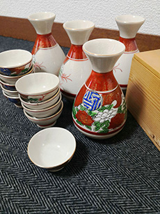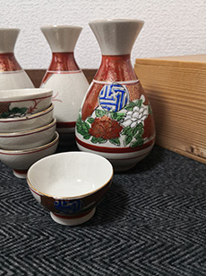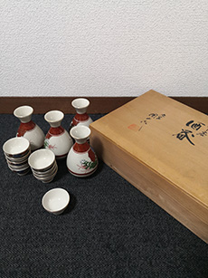 九谷焼-酒器セット-木箱入り-徳利4個-お猪口10客