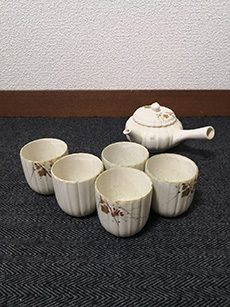 急須一個-湯呑み5客-清水焼(アイボリー)