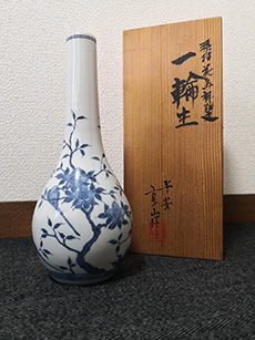 一輪生-平安-享山作-木箱入り-染付花鳥祥瑞文